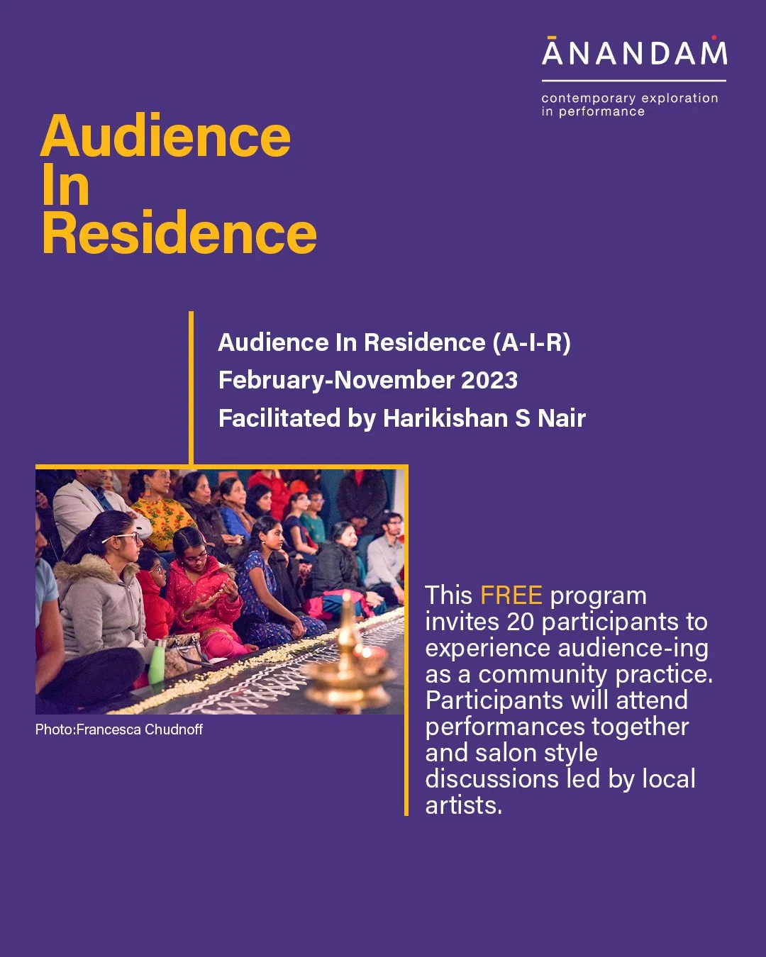 One finds something new not because one is searching for it but simply because one is searching.This is the energy of independent artist-run organizations. They are the crucible where experimental ideas and new models are developed. In this spirit we bring forward an exciting new season. It includes repertoire touring works that are meeting new audiences nationally and internationally, sectoral development initiatives and community festivals. It continues to be a joyous experience to craft these offerings with the whole Anandam team and I look forward to meeting you in the coming months.