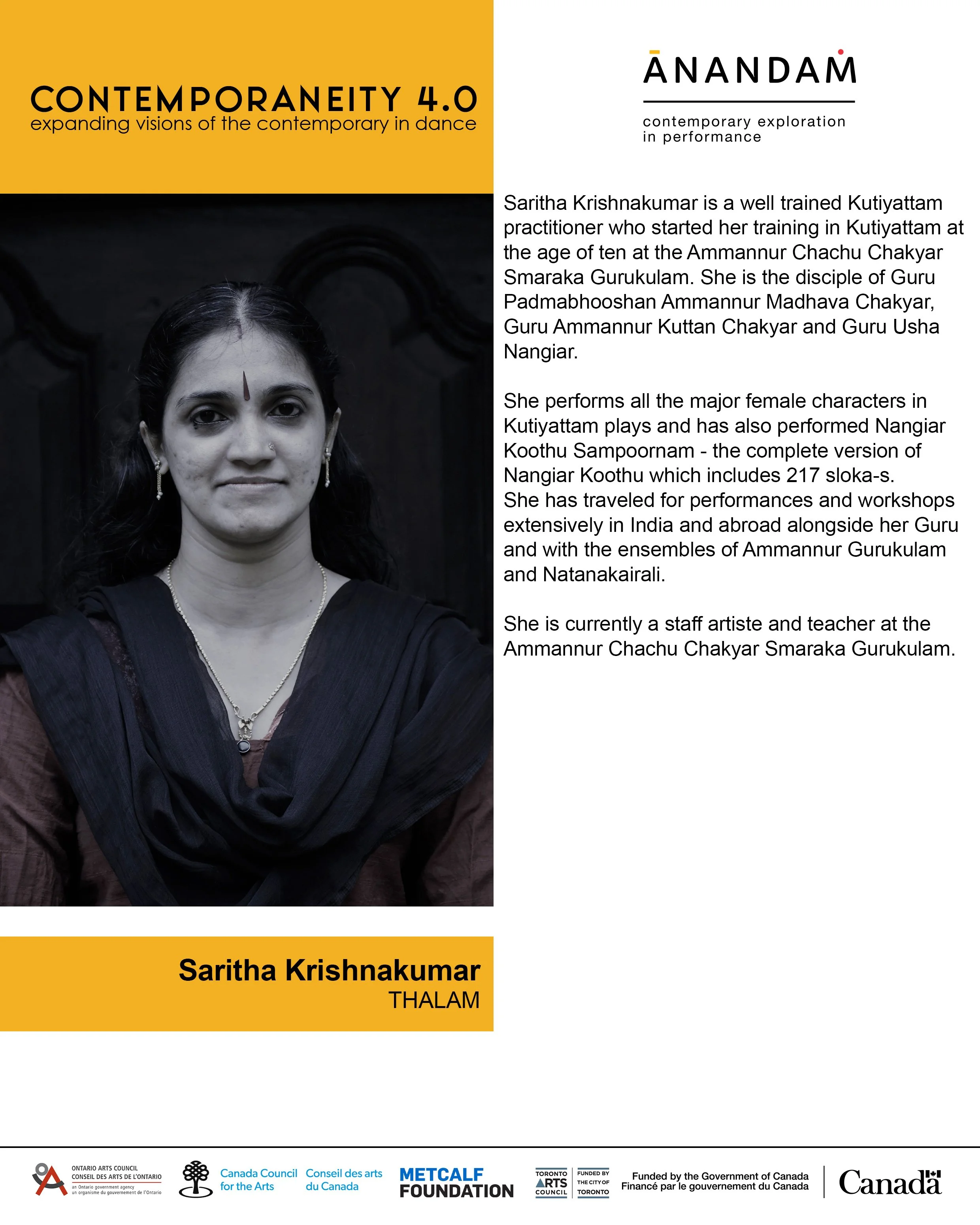 Contemporaneity was developed in 2017 by Soraya Peerbaye and Brandy Leary through the catalyst support of the Toronto Arts Council’s Open Door program. To date it has supported 12 artists, all of which have received further supported development, presentation and touring. We are particularly grateful to the Canadian Heritage Foundation for its support of this fourth iteration.